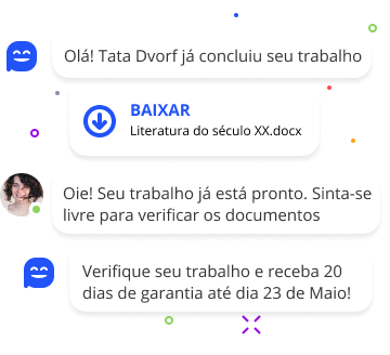 Você receberá seu trabalho pronto até o prazo estipulado. Você terá mais 20 dias de garantia para verificar tudo e pedir as correções gratuitas!